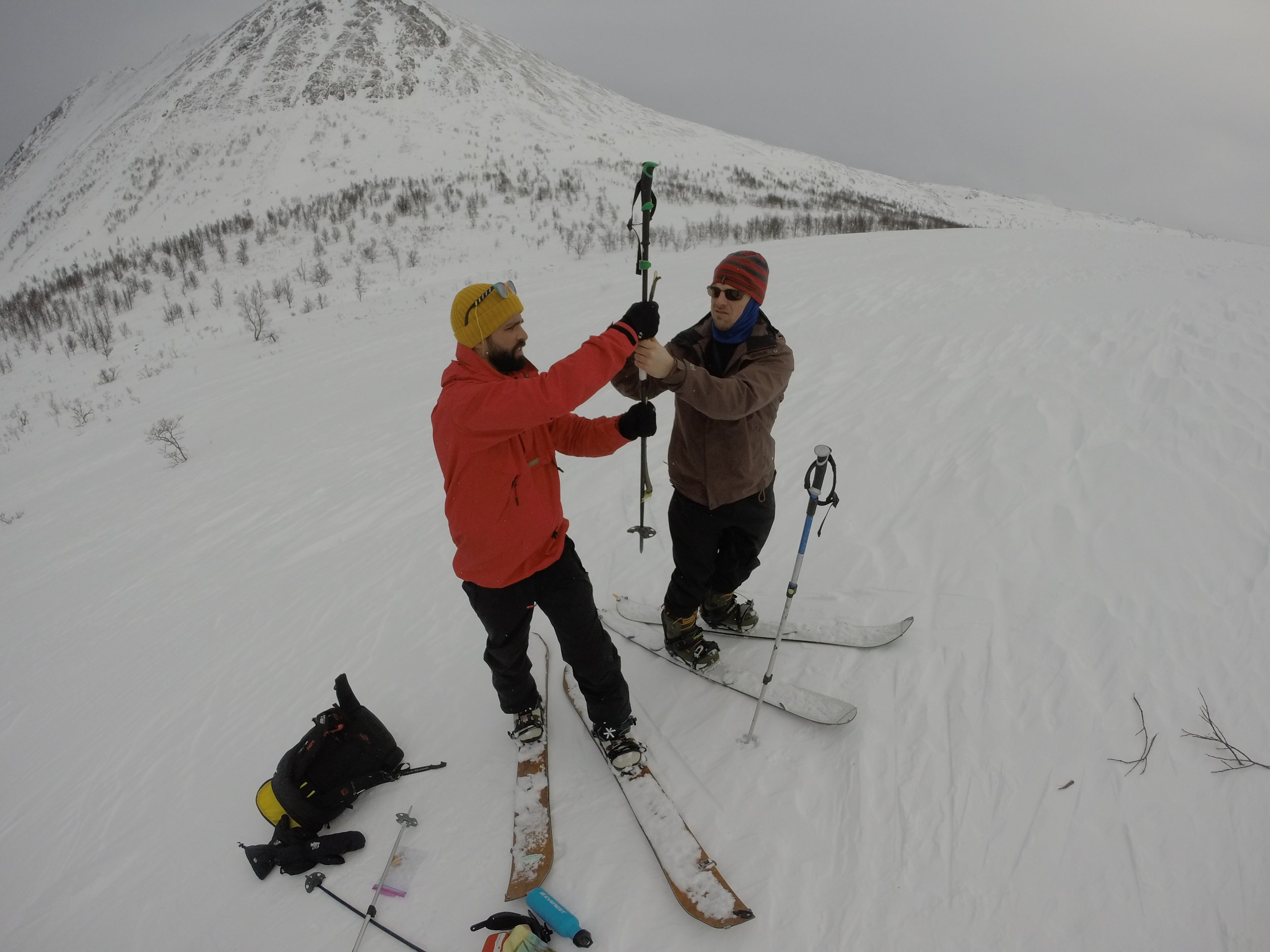 Tultiin viime yönä Norjan Lyngenistä huikealla ajosuorituksella. Ajopäivät mukaan lukien 10 päivän reissu, joista 7 päivää päästiin nousemaan ja laskemaan. Kukaan meistä kolmesta ei ollut aikaisemmin laskenut splitillä, ja vapaalaskukokemukset rajoittuivat maksimissaan pieneen haikkaukseen hissiltä. Lasku- ja retkeilykokemusta on sen sijaan reilusti, joten ainoastaan lumiturvallisuus oli huolenaiheena ennen lähtöä, varsinkin kotiväellä.